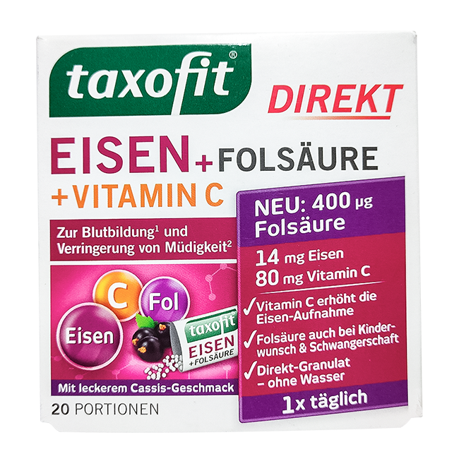 Таксофит железо + Метафолин содержит витамин С, способствующий восстановлению железа, так как с его помощью значительно улучшается усвоение железа в организме. Запатентованная фолиевая кислота Metafolin премиум-класса доступна в биоактивной форме и поэтому может оптимально использоваться всеми здоровыми людьми. Метафолин участвует в важных процессах деления клеток. Клетки, которые, как и клетки крови, быстро разрушаются и обновляются, особенно зависят от оптимального поступления фолиевой кислоты. Благодаря своим особым свойствам Метафолин может оказывать отличную поддержку кроветворению.